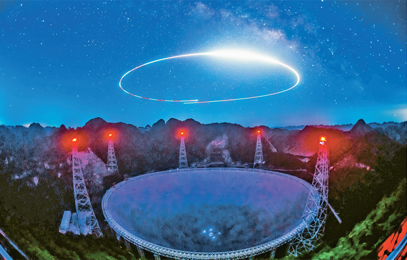截至2022年7月,被譽(yù)為“中國(guó)天眼”的500米口徑球面射電望遠(yuǎn)鏡已發(fā)現(xiàn)660余顆新脈沖星,進(jìn)入成果爆發(fā)期,極大拓展了人類(lèi)觀(guān)察宇宙視野的極限。這是2022年7月24日拍攝的“中國(guó)天眼”夜景。 新華社記者 歐東衢/攝