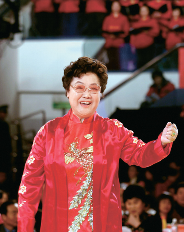 圖為2006年1月7日郭蘭英在“百花迎春——中國文學(xué)藝術(shù)界2006年春節(jié)大聯(lián)歡”中演唱《我的祖國》。 中新社記者 張勤/攝