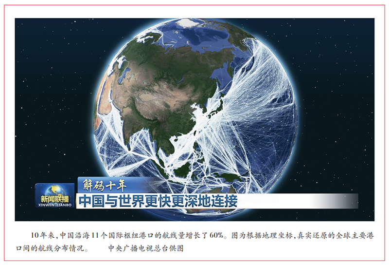 運(yùn)用新技術(shù),打開新視角,帶來新認(rèn)知。新科技是新聞宣傳事業(yè)高質(zhì)量發(fā)展的強(qiáng)大推動力?!督獯a十年》充分利用高技術(shù)、強(qiáng)裝備特點(diǎn),為受眾打造了新的認(rèn)知視角。一是衛(wèi)星視角的規(guī)?;瘧?yīng)用,營造出一種大范圍、大景深的“空間視角”,帶來超乎想象的感官沖擊和視覺震撼。在《讓母親河永葆生機(jī)活力》一集中,通過環(huán)境遙感衛(wèi)星對數(shù)十年間黃河流域的植被進(jìn)行圖像捕捉,還原了黃河沿線的生態(tài)變化,讓觀眾通過衛(wèi)星視角,清晰地看到黃河沿線綠色草地與黃色沙漠之間的交界線。10年間,綠進(jìn)沙退——這條“黃河綠線”,最遠(yuǎn)向西推進(jìn)了150公里,凸顯了黃河沿線的生態(tài)巨變。二是國家級大數(shù)據(jù)的集中調(diào)用。在各方大力配合下,節(jié)目打通50多個部委和直屬單位、頂尖級大數(shù)據(jù)機(jī)構(gòu)、科研院所的國家大數(shù)據(jù)庫,調(diào)取數(shù)以萬億級的海量大數(shù)據(jù),經(jīng)過錯綜復(fù)雜的計(jì)算、推演、分析,再將分析結(jié)論以視覺藝術(shù)的形式加以呈現(xiàn)。在《繪就命運(yùn)與共新藍(lán)圖》一集中,節(jié)目從近10年中國與全球各國的貿(mào)易交易數(shù)據(jù)中,推演出了中國走向全球供應(yīng)鏈中心位置的歷史進(jìn)程。三是無人機(jī)、穿越機(jī)、手持電影機(jī)等我國自主研發(fā)高科技裝備的廣泛應(yīng)用。高科技裝備的創(chuàng)新應(yīng)用,提升了節(jié)目的科技感、渲染力和時代性,彰顯了主流媒體強(qiáng)大的節(jié)目制作能力和科技創(chuàng)新實(shí)力。