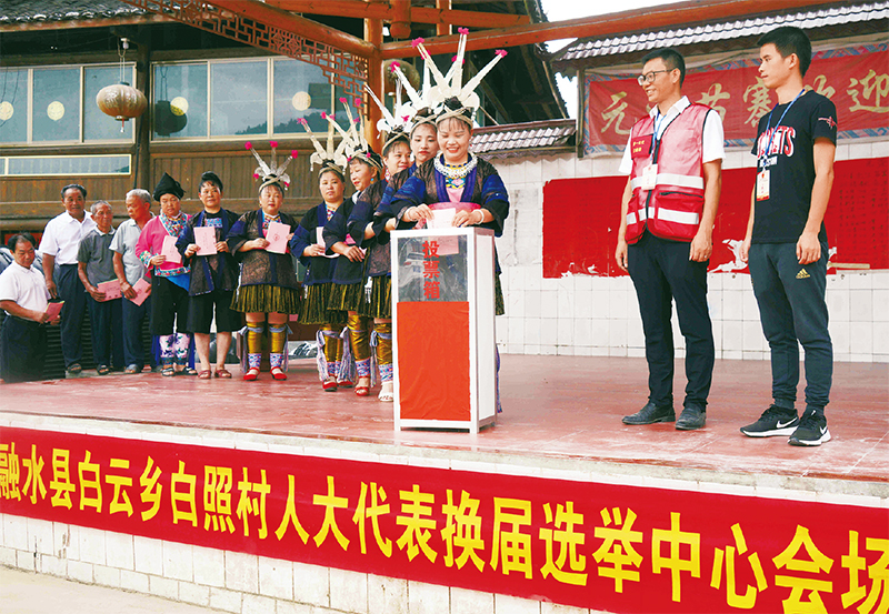 選舉人大代表,是人民代表大會(huì)制度的基礎(chǔ),是人民當(dāng)家作主的重要體現(xiàn)。圖為2021年7月22日,廣西柳州市融水苗族自治縣白云鄉(xiāng)群眾進(jìn)行縣、鄉(xiāng)兩級(jí)人大代表?yè)Q屆選舉?!∏笫菆D片 龍濤/攝