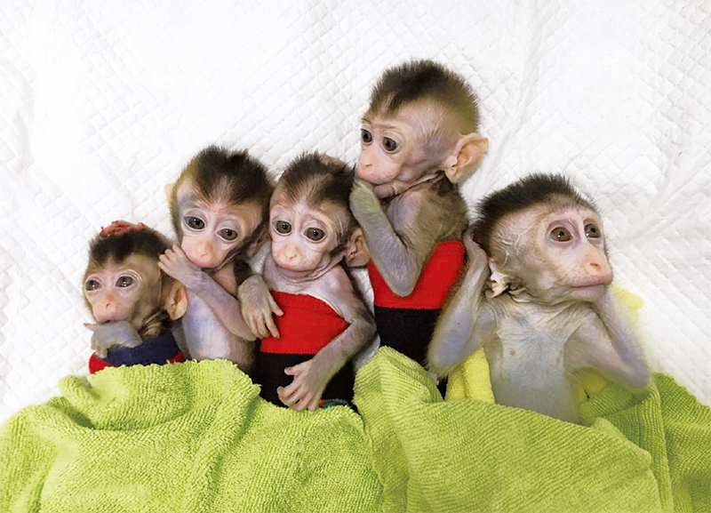中國(guó)科學(xué)院神經(jīng)科學(xué)研究所研究團(tuán)隊(duì)經(jīng)過(guò)3年努力,利用基因編輯技術(shù),成功構(gòu)建了世界首例核心節(jié)律基因BMAL1敲除獼猴模型。該成果為腦認(rèn)知功能研究、重大疾病早期診斷與干預(yù)、藥物研發(fā)等提供了新型高效的動(dòng)物模型。圖為5只生物節(jié)律紊亂體細(xì)胞克隆猴。 新華社發(fā) 中國(guó)科學(xué)院神經(jīng)科學(xué)研究所供圖