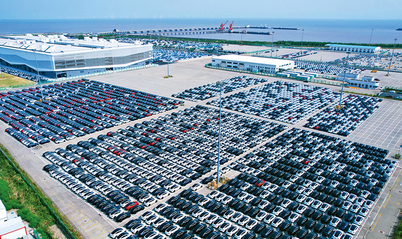 2022年以來,伴隨著我國汽車企業(yè)競爭力、產(chǎn)品力的增強(qiáng),以及海外需求的增長,我國汽車出口延續(xù)上升勢頭。圖為2022年8月13日,上海自貿(mào)區(qū)臨港新片區(qū)陸域一類口岸開放碼頭——南港碼頭,排列整齊的汽車整裝待發(fā)。 人民圖片 計(jì)海新/攝