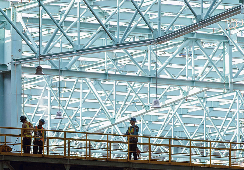 黨的二十大召開(kāi)以來(lái),我國(guó)各條戰(zhàn)線建設(shè)者們搶進(jìn)度、保質(zhì)量,全力沖刺年底關(guān)鍵節(jié)點(diǎn),確保項(xiàng)目早日竣工達(dá)效,推動(dòng)我國(guó)經(jīng)濟(jì)高質(zhì)量發(fā)展。圖為2022年11月2日,位于安徽省馬鞍山市的中國(guó)寶武馬鋼集團(tuán)“十四五”規(guī)劃新特鋼重點(diǎn)項(xiàng)目現(xiàn)場(chǎng)一派繁忙?!∪嗣駡D片 羅繼勝/攝