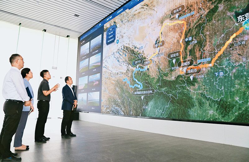 山東紀(jì)檢監(jiān)察機(jī)關(guān)貫通各類監(jiān)督力量,強(qiáng)化監(jiān)督協(xié)同,開展黃河流域生態(tài)保護(hù)和高質(zhì)量發(fā)展專項(xiàng)監(jiān)督和專項(xiàng)巡視巡察。圖為東營市紀(jì)檢監(jiān)察干部在山東黃河三角洲國家級自然保護(hù)區(qū)生態(tài)監(jiān)測中心了解黃河入??谏鷳B(tài)保護(hù)情況?!∩綎|省紀(jì)委監(jiān)委供圖 張新光/攝