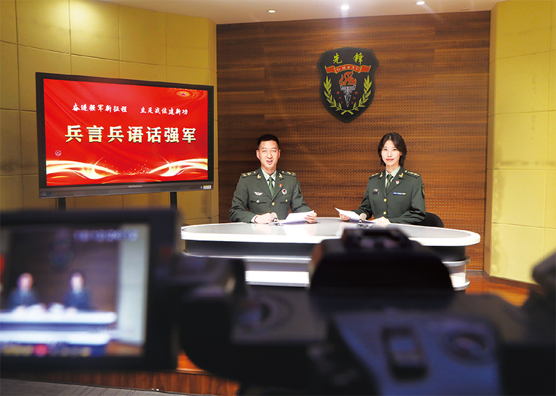 圖為2022年10月30日,陸軍第83集團(tuán)軍某旅組織基層理論骨干通過軍營(yíng)電視臺(tái)宣傳黨的二十大精神。 新華社發(fā) 賈方文/攝