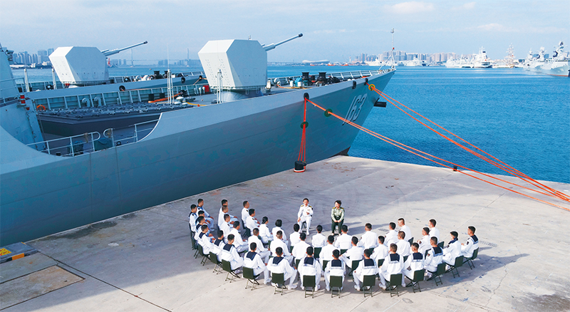 圖為2022年11月14日,“星火”理論宣講服務(wù)政治教員群體成員赴南部戰(zhàn)區(qū)海軍某部,宣講黨的二十大精神。 張杰/攝
