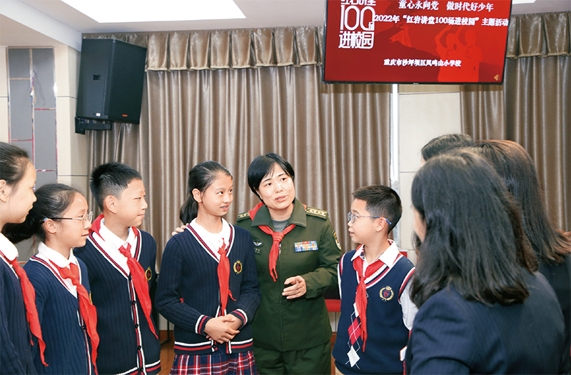 圖為2022?年?11?月?3?日,“星火”理論宣講服務(wù)政治教員群體成員走進重慶市鳳鳴山小學,宣講黨的二十大精神。 何樺/攝