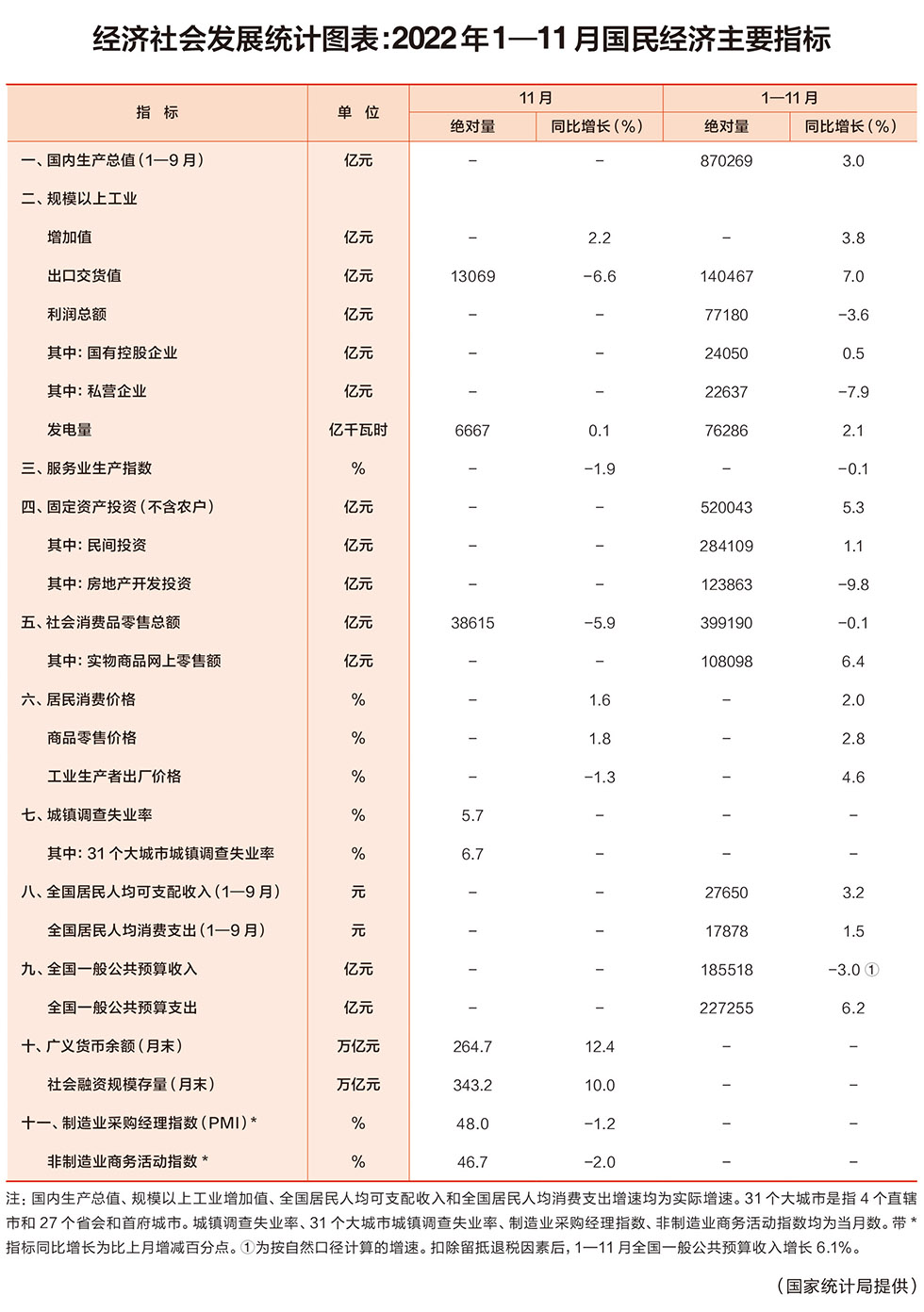 經(jīng)濟(jì)社會(huì)發(fā)展統(tǒng)計(jì)圖表:2022年1—11月國(guó)民經(jīng)濟(jì)主要指標(biāo)