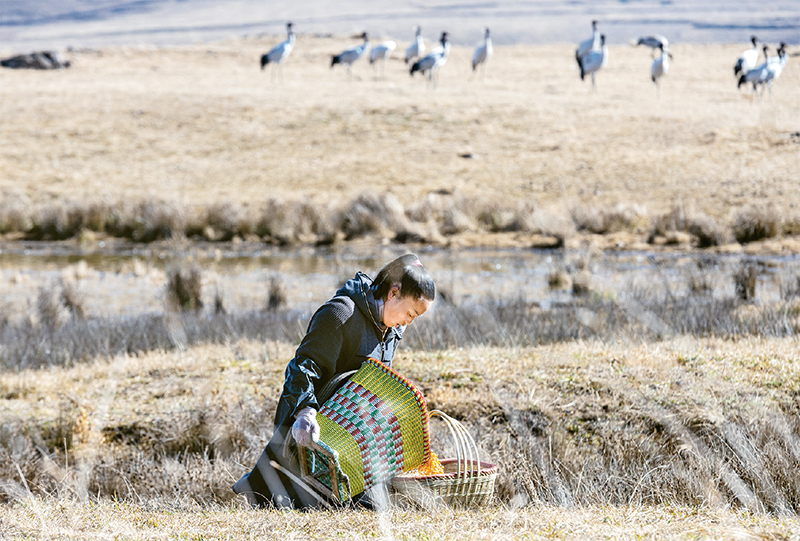 近年來,云南大山包黑頸鶴國家級(jí)自然保護(hù)區(qū)積極實(shí)施濕地保護(hù)與恢復(fù)、濕地生態(tài)效益補(bǔ)償、食物源基地建設(shè)等管護(hù)措施,使這里逐漸成為黑頸鶴在云貴高原上最重要的越冬棲息地和遷徙中轉(zhuǎn)站。圖為2022年12月11日,志愿護(hù)鶴員在大山包黑頸鶴國家級(jí)自然保護(hù)區(qū)準(zhǔn)備給黑頸鶴投食。 新華社記者 曹夢(mèng)瑤/攝
