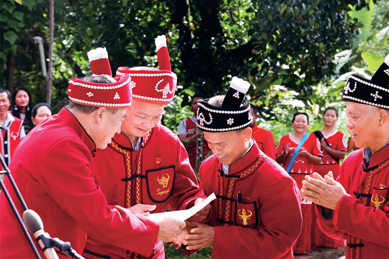 2021年8月19日,習近平總書記給云南省滄源縣邊境村的老支書們回信,勉勵老支書們繼續(xù)發(fā)揮模范帶頭作用,引領鄉(xiāng)親們永遠聽黨話、跟黨走,建設好美麗家園,維護好民族團結,守護好神圣國土,唱響新時代阿佤人民的幸福之歌。圖為滄源縣班洪鄉(xiāng)、班老鄉(xiāng)老支書傳看習近平總書記回信。 云南日報供圖 周燦/攝