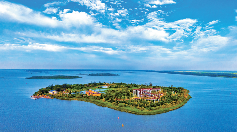衡水湖國(guó)家級(jí)自然保護(hù)區(qū)經(jīng)過實(shí)施濕地修復(fù)與保護(hù)、河網(wǎng)綜合整治、環(huán)湖林地修復(fù)等多項(xiàng)工程,綜合生態(tài)環(huán)境恢復(fù)成效顯著,成為京津冀重要的生態(tài)環(huán)境支撐區(qū)、國(guó)家生態(tài)旅游示范區(qū)。圖為2022年7月25日,藍(lán)天白云下的衡水湖。 河北日?qǐng)?bào)記者 田明/攝