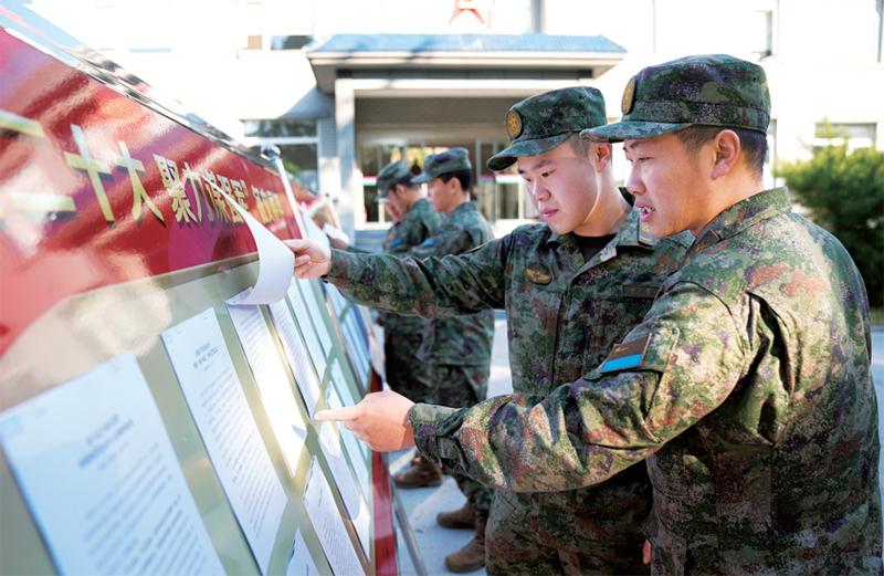黨的二十大勝利召開后,在大江南北的座座軍營,在野外駐訓(xùn)地,在邊關(guān)哨所,在任務(wù)點(diǎn)位,全軍各部隊(duì)通過舉行多種活動(dòng),學(xué)習(xí)宣傳貫徹黨的二十大精神。圖為空軍某后勤訓(xùn)練基地學(xué)習(xí)黨的二十大精神征文展評(píng)活動(dòng)現(xiàn)場。 申衛(wèi)紅/攝