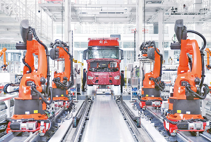智能制造是先進(jìn)制造技術(shù)和新一代信息技術(shù)的深度融合,是我國制造業(yè)高質(zhì)量發(fā)展的主要方向。圖為2023年1月31日,工人在位于吉林長春的一汽解放J7智能工廠內(nèi)進(jìn)行整車裝配作業(yè)。 新華社記者 許暢/攝
