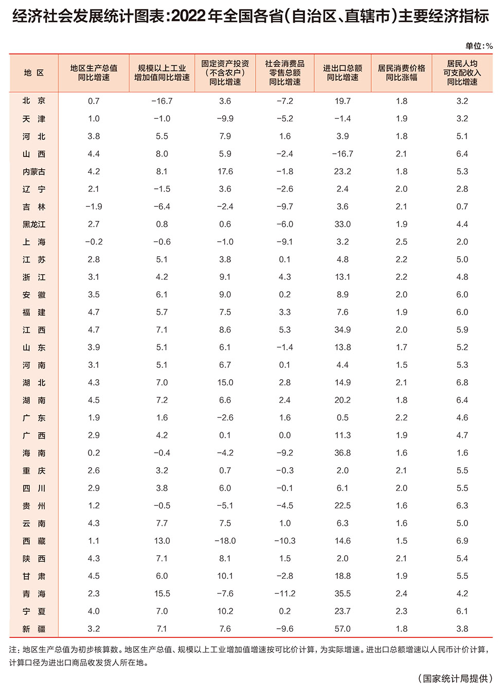 經(jīng)濟社會發(fā)展統(tǒng)計圖表:2022年全國各?。ㄗ灾螀^(qū)、直轄市)主要經(jīng)濟指標