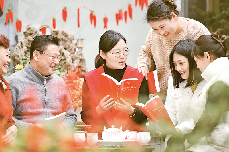 2022年11月17日,在山東省臨沂市郯城縣馬頭鎮(zhèn)民主街,“巾幗宣講團(tuán)”成員為群眾宣講黨的二十大精神?!敖韼叫v團(tuán)”成員由各社區(qū)、村街婦聯(lián)干部擔(dān)任,她們走進(jìn)農(nóng)家、田間宣講黨的二十大精神和國(guó)家取得的輝煌成就,進(jìn)一步堅(jiān)定廣大干部群眾“聽(tīng)黨話、感黨恩、跟黨走”的信念。 全國(guó)婦聯(lián)供圖