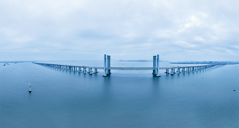 2023年2月3日,我國首條跨海高鐵——福廈高鐵進(jìn)入靜態(tài)驗(yàn)收階段,標(biāo)志著全線主體工程及其配套工程建設(shè)已基本完成。圖為福廈高鐵泉州灣跨海大橋(無人機(jī)合成照片)。 新華社記者 周義/攝