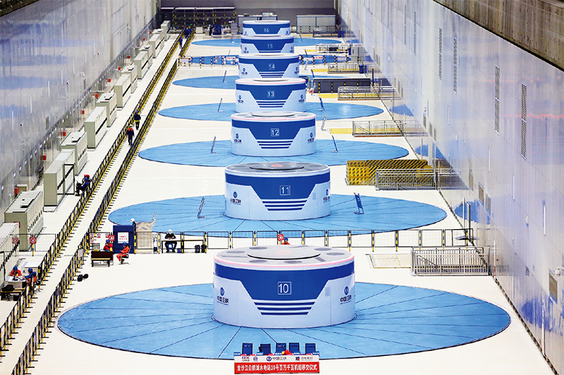 2022年11月5日18時(shí)55分,白鶴灘水電站10號(hào)機(jī)組順利通過72小時(shí)試運(yùn)行,正式投入商業(yè)運(yùn)行。圖為白鶴灘水電站右岸地下廠房發(fā)電機(jī)組。 新華社發(fā) 閆科任/攝
