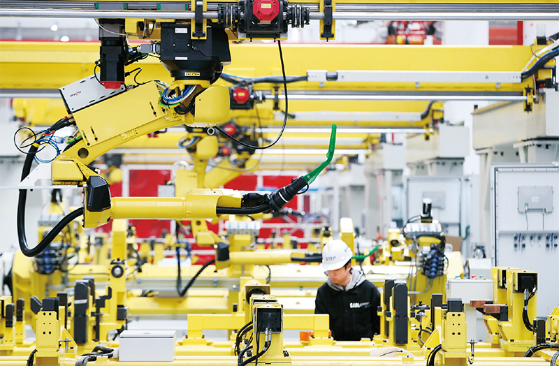 我國著力實施創(chuàng)新驅(qū)動發(fā)展戰(zhàn)略,產(chǎn)業(yè)技術(shù)創(chuàng)新水平持續(xù)提升。圖為2023年2月12日,在浙江省湖州市德清縣一家企業(yè)車間里,工人在調(diào)試智能化生產(chǎn)線。 新華社發(fā) 謝尚國/攝
