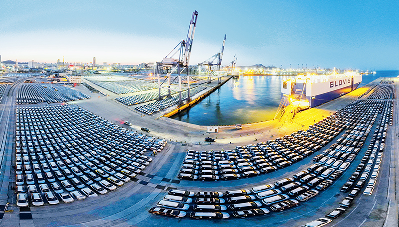 我國堅定不移擴大對外開放,貨物進出口總額連續(xù)多年居世界首位。圖為2023年4月8日,在煙臺港滾裝碼頭,大批外貿(mào)商品車等候發(fā)運。 中經(jīng)視覺 宋林繼/攝