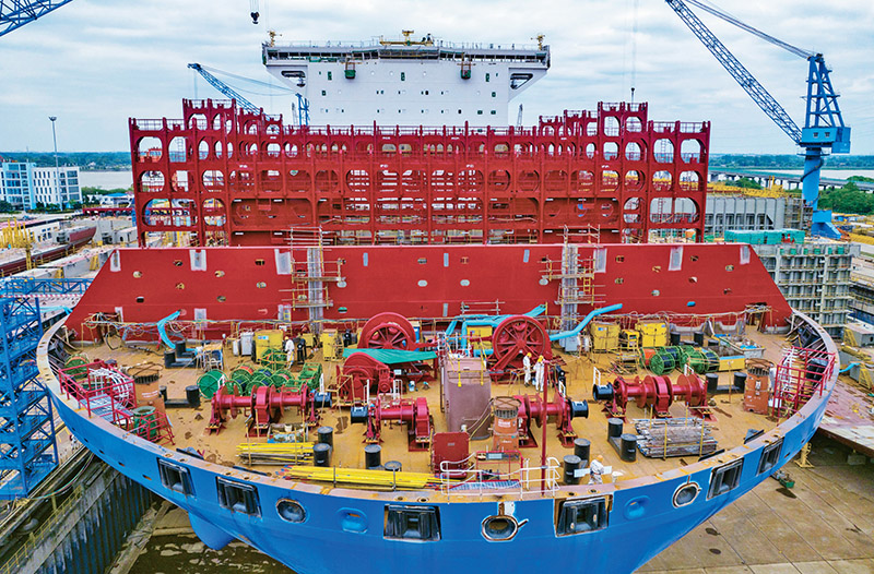 主題教育開展以來,各地區(qū)各部門堅持以習(xí)近平新時代中國特色社會主義思想為指導(dǎo),以強(qiáng)化理論學(xué)習(xí)指導(dǎo)發(fā)展實踐,以深化調(diào)查研究推動解決發(fā)展難題,把學(xué)習(xí)和調(diào)研落實到完成黨的二十大部署的各項任務(wù)中去,形成推動高質(zhì)量發(fā)展的強(qiáng)大動力。圖為2023年5月7日,江蘇揚(yáng)州中遠(yuǎn)海運(yùn)重工有限公司開足馬力抓生產(chǎn)(無人機(jī)照片)。 新華社發(fā) 周社根/攝