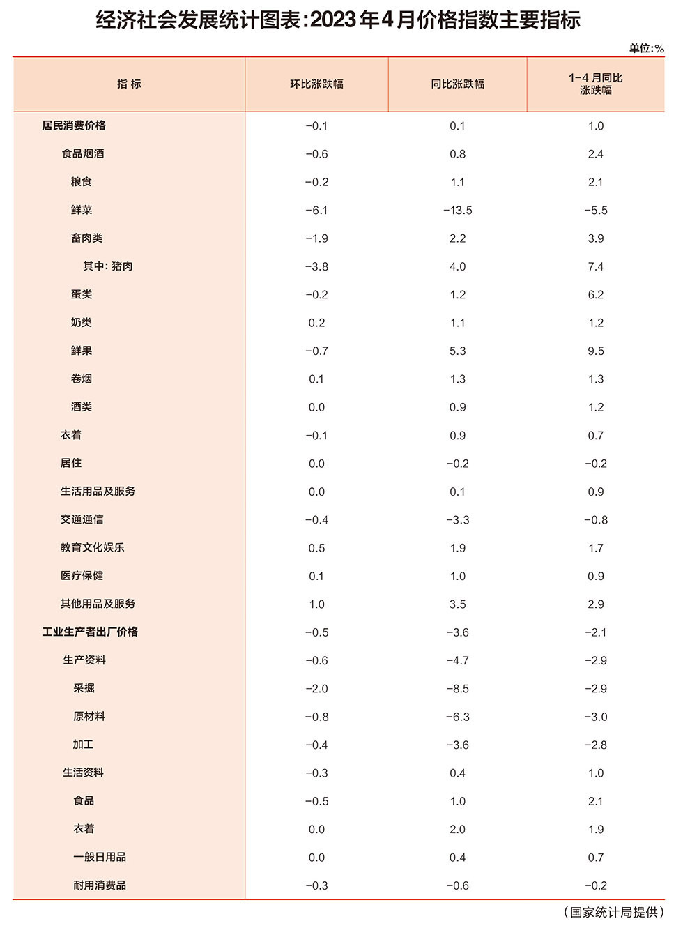 經(jīng)濟(jì)社會發(fā)展統(tǒng)計圖表:2023年4月價格指數(shù)主要指標(biāo)