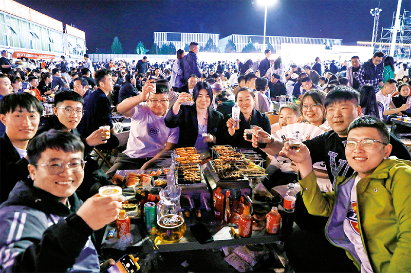 2023年“五一”假期期間,來(lái)自全國(guó)各地的游客紛紛前往山東淄博,品嘗走紅的“靈魂燒烤”。淄博市政府和市民積極采取措施為游客提供便利,如新增燒烤公交定制專(zhuān)線,規(guī)范住宿價(jià)格,商場(chǎng)和影院提供夜間休息服務(wù)等,溫暖著每一名游客。圖為2023年4月29日,游客在淄博市一家燒烤城吃燒烤。 新華社發(fā) 朱偉/攝