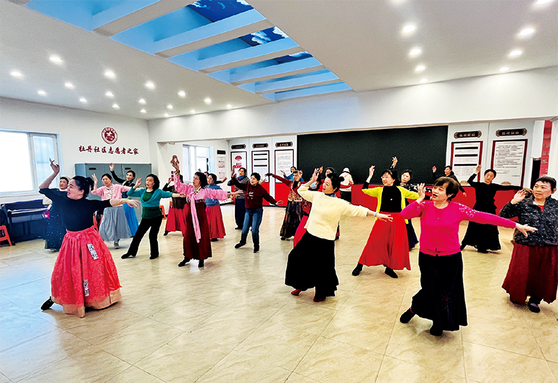 圖為2023年4月,牡丹社區(qū)“幸福教育課堂”民族舞開課,舞出健康好生活。 牡丹社區(qū)供圖