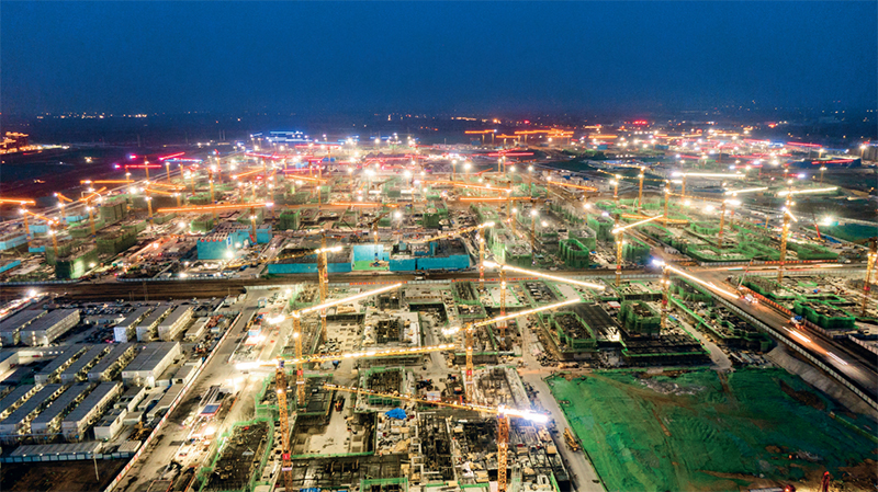新時代以來,我國工人階級和廣大勞動群眾在實現(xiàn)中國夢偉大進(jìn)程中拼搏奮斗、爭創(chuàng)一流、勇攀高峰,譜寫了“中國夢·勞動美”的新篇章。圖為2023年3月29日晚,河北雄安新區(qū)雄東片區(qū)安置房項目工地上塔吊林立。 工人日報社供圖 王偉偉/攝