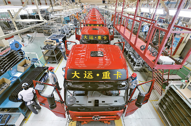 近年來,山西大力實(shí)施產(chǎn)業(yè)鏈“鏈長制”建設(shè),著力構(gòu)建以制造業(yè)為重點(diǎn)的現(xiàn)代化產(chǎn)業(yè)體系。2022年,山西新能源汽車、高端裝備制造等十大重點(diǎn)產(chǎn)業(yè)鏈帶動上下游經(jīng)營主體2200多戶,營收總額突破3800億元。圖為大運(yùn)重卡總裝車間。 山西日報(bào)社供圖