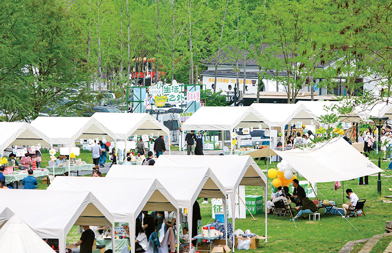 2023年4月,浙江省湖州市安吉縣天荒坪鎮(zhèn)余村舉行“生活之外”青年市集活動,為青年人才搭建起合作交流的平臺。圖為青年市集活動現(xiàn)場。 安吉縣委宣傳部供圖