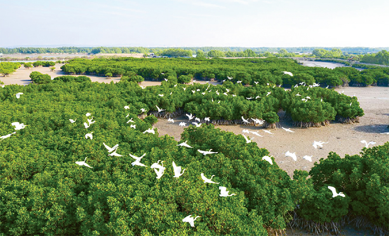 廣東湛江紅樹林國家級自然保護區(qū)內(nèi)紅樹林郁郁蔥蔥,白鷺翔集。圖為保護區(qū)一景。 湛江市委宣傳部供圖 彭鎮(zhèn)強/攝