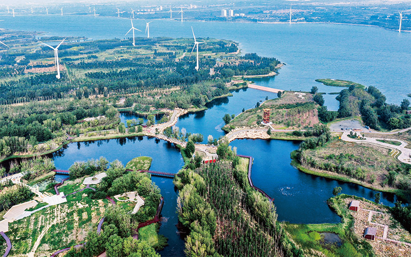 近年來,河北省張家口市大力推進(jìn)清潔能源開發(fā)利用,推動(dòng)新能源項(xiàng)目建設(shè),助力綠色低碳發(fā)展。圖為張家口市懷來縣官廳水庫國家濕地公園景區(qū)矗立的風(fēng)電風(fēng)機(jī)。 張家口市委宣傳部供圖 武殿森/攝