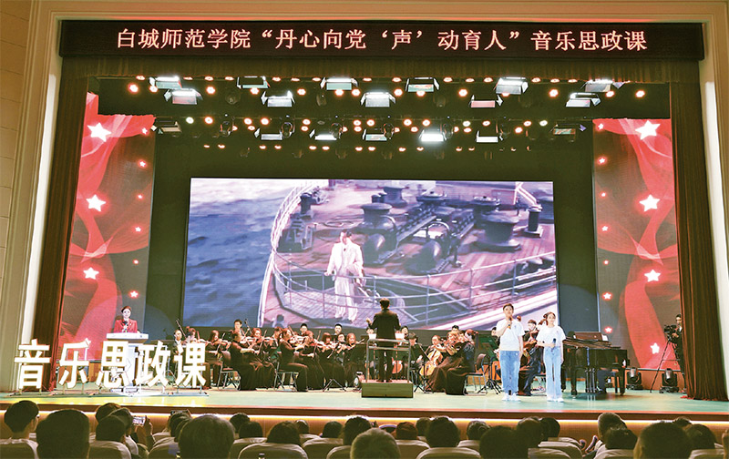 圖為2023年5月5日,長影集團聯(lián)合吉林省委教育工委策劃、由長影樂團創(chuàng)新編排的音樂思政課在吉林白城師范學院首演。 長影集團供圖