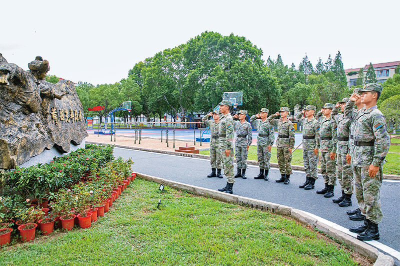 圖為2023年6月29日,“模范空降兵連”官兵在黃繼光雕塑前宣誓。 謝程宇/攝