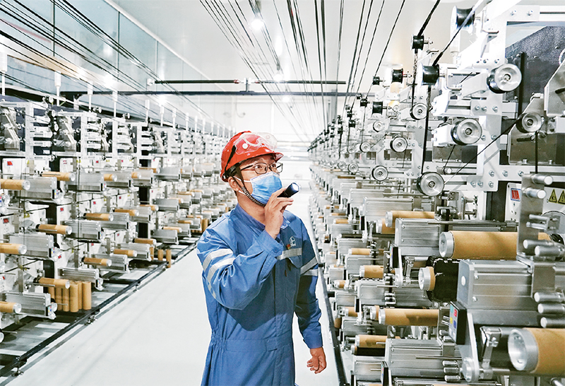 2022年10月,中國(guó)石化在上海建成投產(chǎn)國(guó)內(nèi)首套48K大絲束碳纖維全國(guó)產(chǎn)化生產(chǎn)線,一舉改變我國(guó)大絲束碳纖維全部依賴進(jìn)口、長(zhǎng)期供不應(yīng)求局面,有力推動(dòng)國(guó)產(chǎn)碳纖維產(chǎn)業(yè)躋身世界前列。圖為中國(guó)石化上海石化大絲束碳纖維生產(chǎn)裝置。 中國(guó)石化供圖