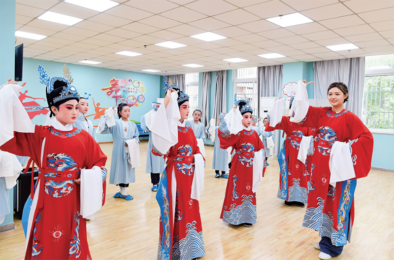 近年來(lái),安徽省合肥市肥西縣桃花鎮(zhèn)依托社區(qū)新時(shí)代文明實(shí)踐站積極開展文化傳承特色活動(dòng),通過(guò)設(shè)立黃梅戲興趣班,聘請(qǐng)戲曲老師免費(fèi)為小朋友進(jìn)行黃梅戲教學(xué)輔導(dǎo),讓孩子們感受傳統(tǒng)戲曲的魅力。圖為老師在新時(shí)代文明實(shí)踐站指導(dǎo)小朋友學(xué)習(xí)黃梅戲動(dòng)作。 新華社發(fā) 徐勇/攝