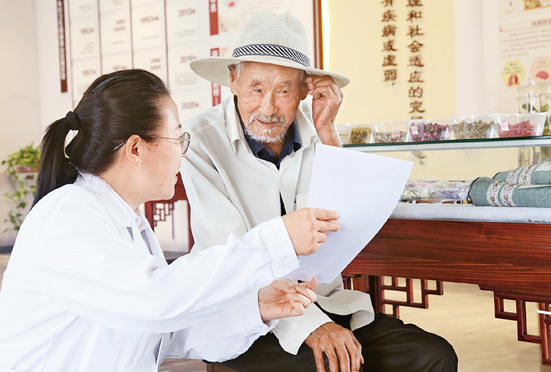 走進(jìn)朱村健康服務(wù)中心,宣傳架上擺放的健康教育宣傳頁映入眼簾。腰痛、脛腓骨骨折、“三高”……這些宣傳頁是臨沭縣中醫(yī)院針對多種常見疾病提供的中醫(yī)健康指導(dǎo),吸引著許多村民駐足閱讀。93歲的“老支前”王克昌正在朱村健康服務(wù)中心喝中藥養(yǎng)生茶,2013年習(xí)近平總書記來到他家里看望,如今,老人家身體依舊硬朗,每年堅(jiān)持體檢?!斑@兒開門了我就來轉(zhuǎn)轉(zhuǎn),過來喝個(gè)養(yǎng)生茶,量量血壓。”王克昌說起村里的變化,臉上露出開心的笑容。