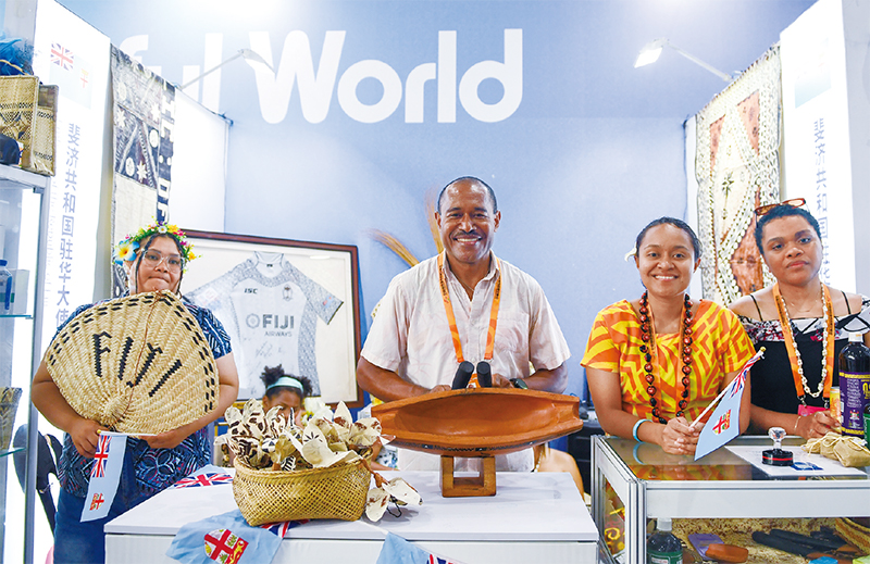 2023服貿(mào)會(huì)上舉辦“一帶一路”共建國(guó)家特色文化展示活動(dòng),通過(guò)特色文藝演出、文化推介、護(hù)照打卡等一系列活動(dòng),展現(xiàn)共建國(guó)家文化風(fēng)采。圖為展示活動(dòng)上,斐濟(jì)共和國(guó)駐華大使館展區(qū)的工作人員展示特色樂(lè)器。 新華社記者 鞠煥宗/攝
