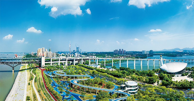 綠色是高質(zhì)量發(fā)展的鮮明底色。近年來,江西省九江市堅持“還江于民、便民利民,生態(tài)優(yōu)先、文化鑄魂”原則,積極推進城市濱江綠地建設(shè)。圖為2023年7月8日,長江國家文化公園九江城區(qū)段。 石小龍/攝