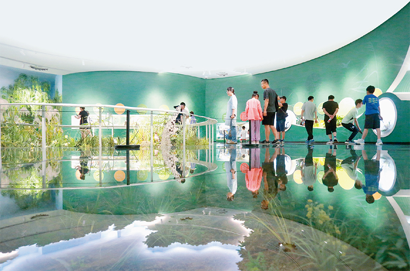 大運(yùn)河是祖先留給我們的寶貴遺產(chǎn),是流動(dòng)的文化,是展現(xiàn)中華文明突出特性的鮮活文化符號(hào)。圖為游客在揚(yáng)州中國(guó)大運(yùn)河博物館內(nèi)參觀。 人民圖片 孟德龍/攝
