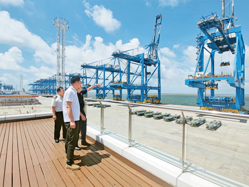 圖為2023年7月12日,審計(jì)署駐太原特派員辦事處在海關(guān)審計(jì)中,深入廣西欽州港自動(dòng)化碼頭,重點(diǎn)關(guān)注進(jìn)境貨物后續(xù)監(jiān)管,實(shí)地走訪進(jìn)境貨物加工企業(yè),調(diào)查了解海鐵聯(lián)運(yùn)運(yùn)行等情況。 審計(jì)署供圖