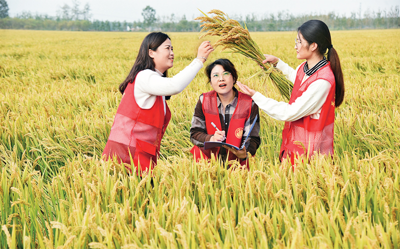 近年來(lái),江蘇省連云港市東??h審計(jì)局為確保豐收糧食儲(chǔ)備安全,以日常檢查和專項(xiàng)審計(jì)檢查相結(jié)合,嚴(yán)審糧油物資儲(chǔ)備臺(tái)賬、實(shí)物庫(kù)存、糧食質(zhì)量、檔案管理等情況。圖為2022年10月21日,東??h審計(jì)局糧食儲(chǔ)備安全專項(xiàng)審計(jì)工作人員在高產(chǎn)稻麥農(nóng)業(yè)產(chǎn)業(yè)園區(qū)檢測(cè)即將豐收的水稻實(shí)產(chǎn)情況。 中新社發(fā) 張正友/攝