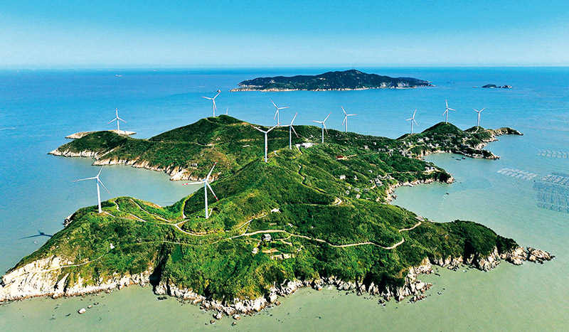 圖為2023年11月1日,浙江省舟山市嵊泗縣東綠華島,風(fēng)電機(jī)組正源源不斷地輸送綠色電能。 人民圖片 姚峰/攝