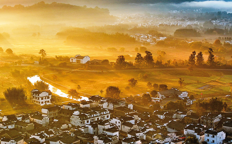 黨的十八大以來,我國生態(tài)文明建設(shè)從理論到實踐都發(fā)生了歷史性、轉(zhuǎn)折性、全局性變化,美麗中國建設(shè)邁出重大步伐。圖為2023年11月1日在安徽省黃山市黟縣宏村鎮(zhèn)盧村拍攝的秋景(無人機照片)。 新華社發(fā) 施亞磊/攝