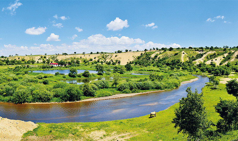 遼寧、河北、內蒙古等地堅持山水林田湖草沙一體化保護和系統(tǒng)治理,通過采取活沙障固沙、造林種草、圍欄封禁等綜合措施,有效阻止了渾善達克沙地南侵,沙區(qū)生態(tài)狀況持續(xù)改善。圖為河北省圍場縣沙區(qū)經(jīng)過治理后草豐水美、綠色環(huán)繞的景象。 董艷冬/攝