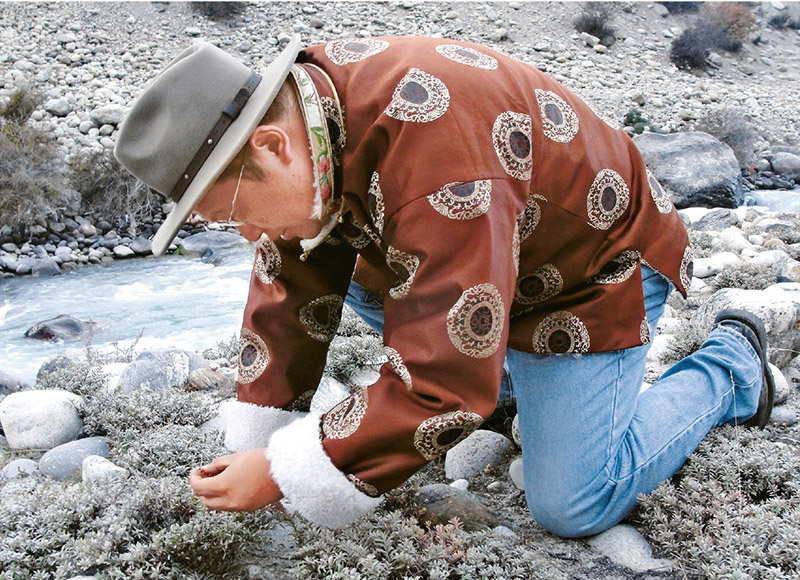 圖為鐘揚教授在西藏戶外采集種子(資料圖片)。 新華社發(fā)
