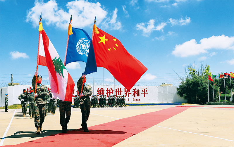 隨著全球安全倡議等中國方案得到越來越多認(rèn)同,構(gòu)建人類命運(yùn)共同體成為越來越多國家的共識。2022年7月1日,聯(lián)合國駐黎巴嫩臨時部隊(聯(lián)黎部隊)授予中國第20批赴黎巴嫩維和部隊全體410名官兵聯(lián)合國“和平勛章”,以表彰他們?yōu)槔璋湍勰喜康貐^(qū)和平穩(wěn)定作出的突出貢獻(xiàn)。圖為在黎巴嫩南部辛尼亞村的中國維和部隊營區(qū),中國維和部隊官兵在受勛后通過觀禮臺。 新華社記者 劉宗亞/攝