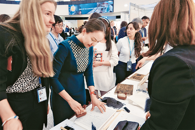 2023年5月2日,以“尼山傳千載 岱海連世界——全球文明倡議的生動故事”為主題的2023維也納聯(lián)合國中文日系列活動在奧地利維也納聯(lián)合國城舉辦。圖為參訪者在活動上體驗(yàn)中國傳統(tǒng)拓印。 新華社發(fā) 王宙/攝