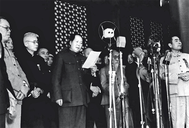 1949年10月1日下午3時,開國大典在天安門廣場隆重舉行。毛澤東同志莊嚴宣告:“中華人民共和國中央人民政府今天成立了。” 新華社發(fā)