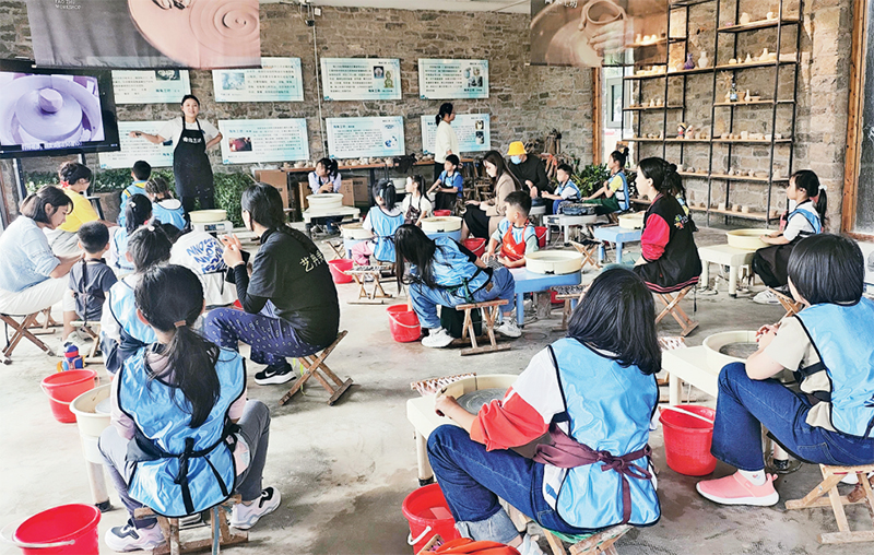 圖為2023年4月16日,在東仲都村陶朱工坊,學生們正體驗泥塑制作。 濟寧市泗水縣委宣傳部供圖